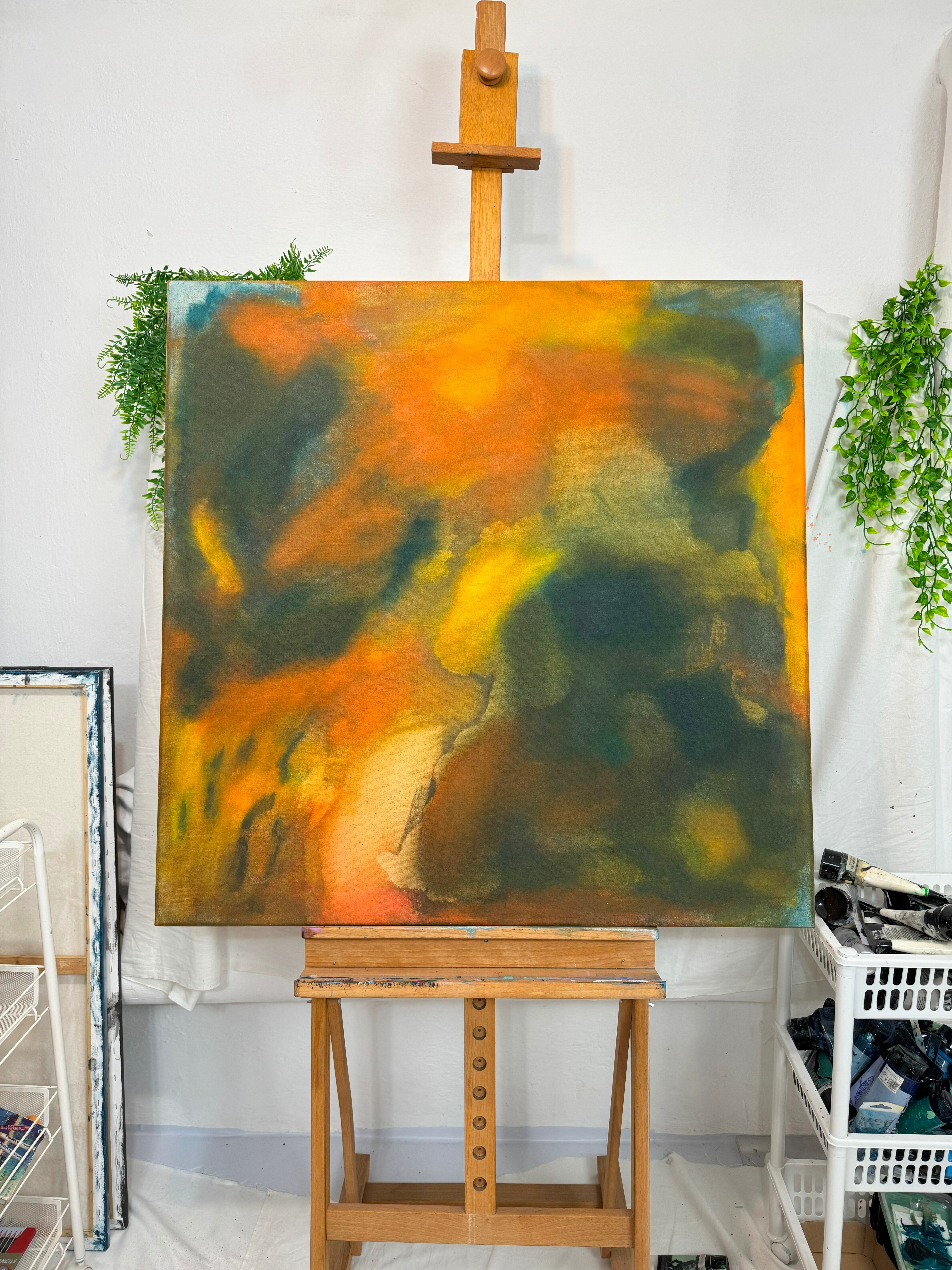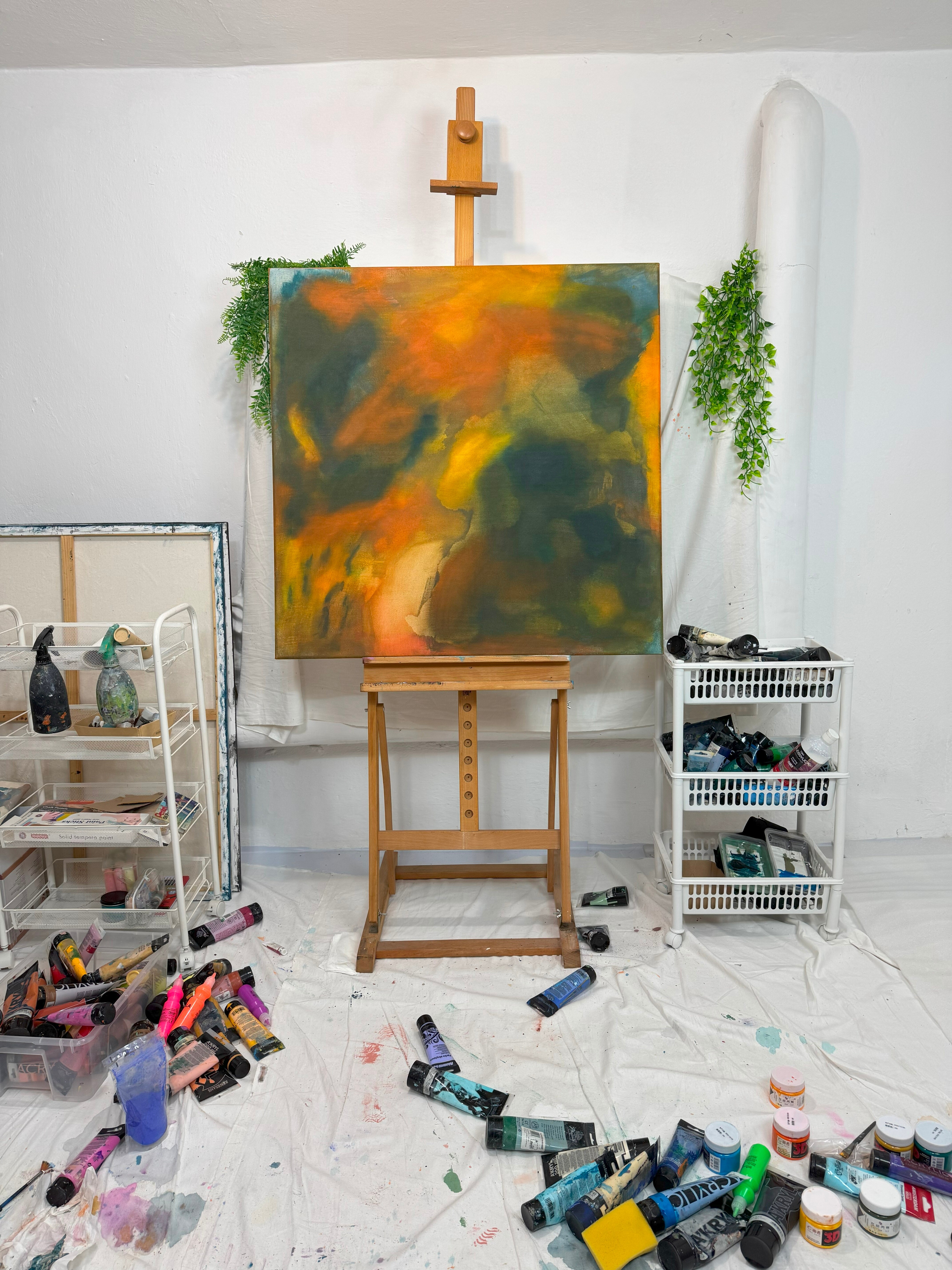 Tworzę obrazy w technice olejnej lub akrylowej na płótnie bawełnianym naciągniętym na krosno malarskie wykonane z drewna sosnowego, co sprawia, że obrazy są lekkie.