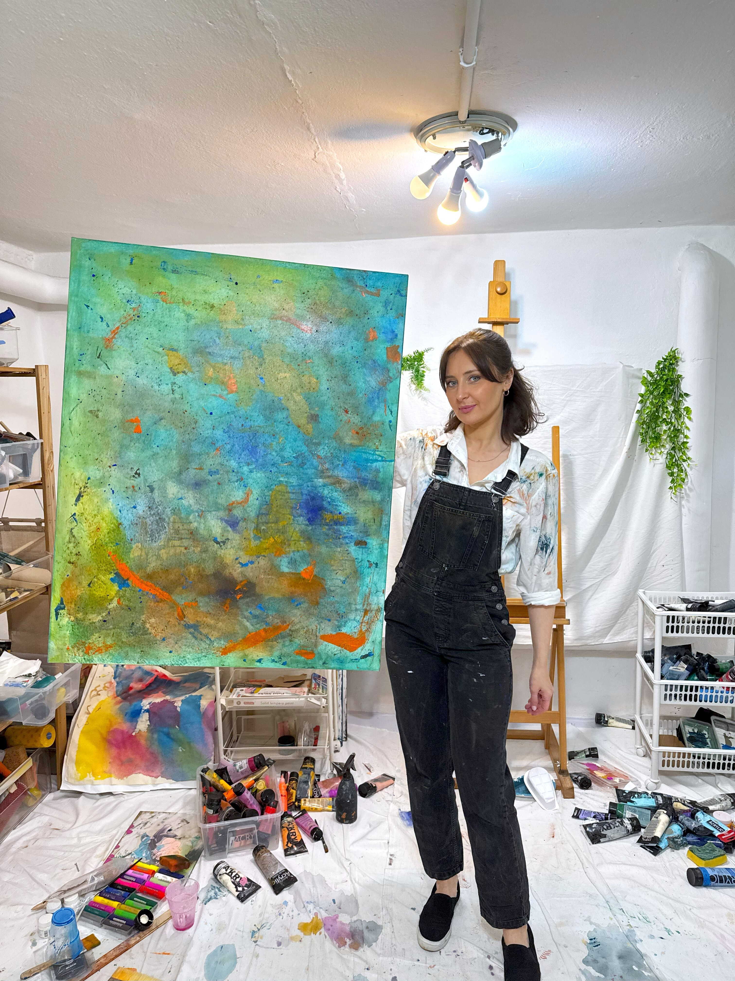 Tworzę obrazy w technice olejnej lub akrylowej na płótnie bawełnianym naciągniętym na krosno malarskie wykonane z drewna sosnowego, co sprawia, że obrazy są lekkie.
